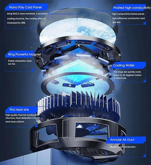Magnetic suction design for Phone and Tablet The magnetic suction sheet consists of a highly thermally conductive steel plate and a strong adhesive, which can be used for a long time after a single installation. The heatsink will automatically absorb when it is close to it and will not fall off during use. In addition, due to the large heat dissipation area, the heat dissipation effect is higher than that of products on the market.