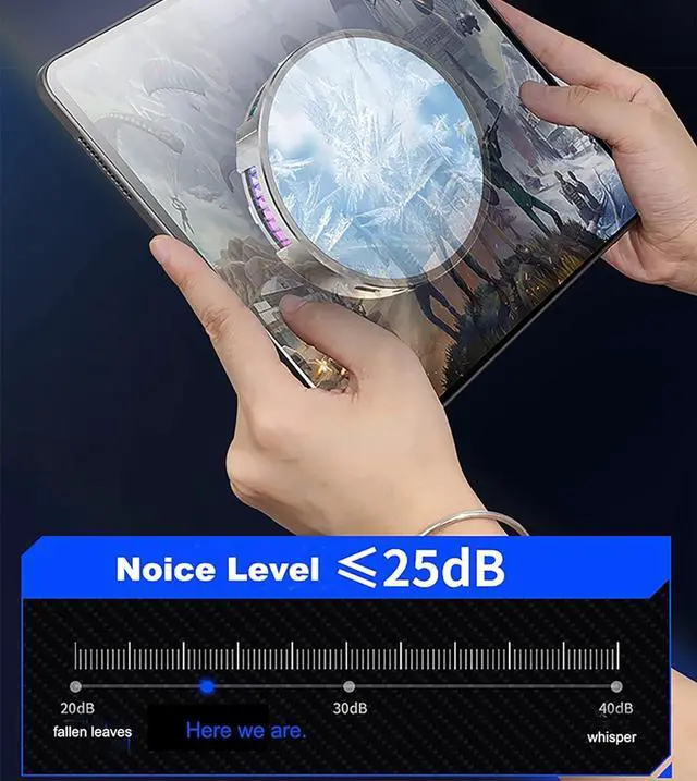 RGB LightingThe internal high-performance Phone Cooler fan and radiator for tabletis fast, but silent. it has RGB colors and lighting effects. But the lights can not be turned off unless power is off.