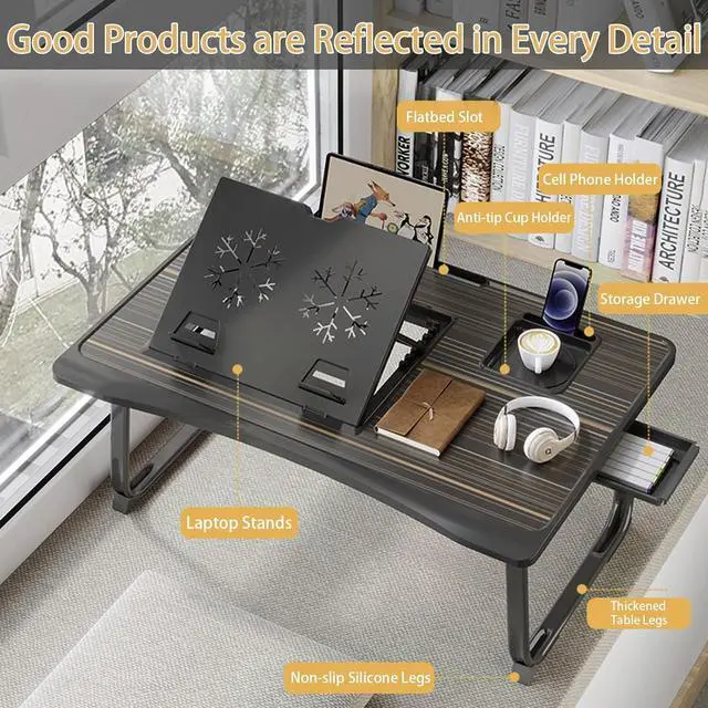 MULTIFUNCTION LAPTOP DESK: The laptop desk is equipped with storage erawer, tablet slot, phone stand and cup holder. This laptop desk could be used as laptop workstation for bed and couch, snacks tray, kids lap homework/bed table, reading and writing stand, and even portable mini picnic stand. When fold the desktop legs, adjust the desktop angle, and place it on the desktop, which could be used as to laptop stand for desk.