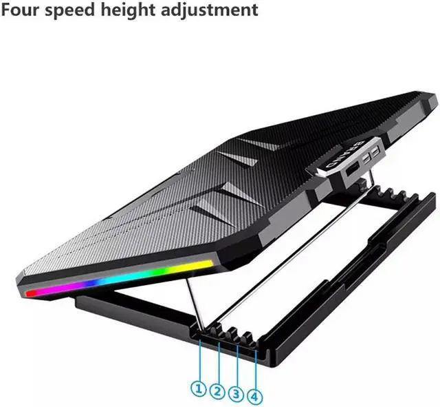 Cool Appearance & Beautiful Laptop Cooler: Laptop stand with fan is especial designed. Designed for games. color breathing light &extended Colorful light, laptop fan cooling pad not only beautiful but also working good. Very quiet rapid cooling effect