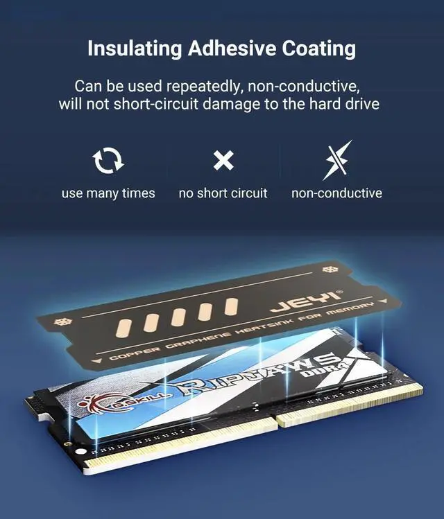 Our heatsinks feature a slim and lightweight design that fits seamlessly onto your laptop's memory modules, without adding any extra bulk or weight. The graphene material is highly conductive and allows for efficient heat transfer away from your memory, ensuring that it stays cool even during intense usage.