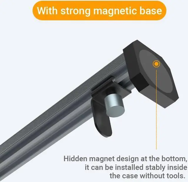 Tool-free Installation:Hidden magnet design at the bottom, it can be installed stably inside the case without tools. The support module is equipped with silicone cushioning anti-scratch pad and base high-gloss technology.