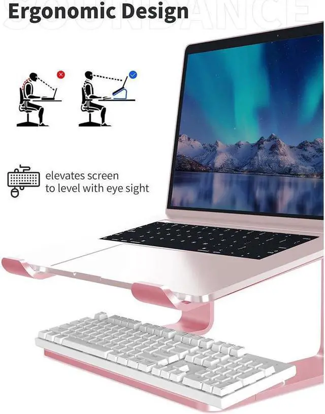 The Laptop stand works as a riser to elevate the laptop screen to 7inch and brings it to a perfect eye level to fix your posture.