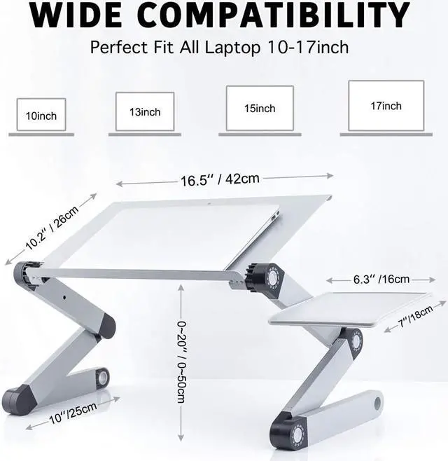 [Full Protection] This laptop stand is made of whole aluminum alloy. It has a beautiful finish nice rounded corners to avoid scratching. With anti-skid rubber pads on both up and down surface to protect your device from any sliding.