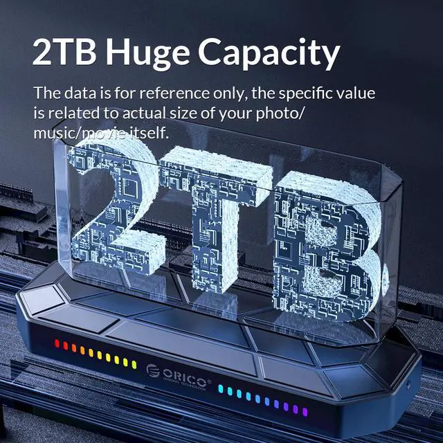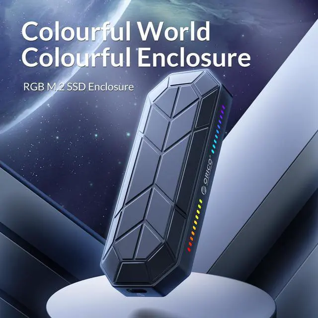 ORICO M2VG01 is a portable SSD enclosure specially designed for M.2 NVMe SSD. It comes with RGB colorful lighting effects, which can present different lighting effects according to different working conditions. After it is powered on, it will always light up in red when no SSD is installed. The red, yellow, green, blue, and purple lights alternately and slowly change during standby. The light flashes quickly when the SSD is loaded and the reading and writing work is started. When sleeping, the blue breathing light flashes like breathing. Intimately accompany you to play and work, and bring more fun to your life.