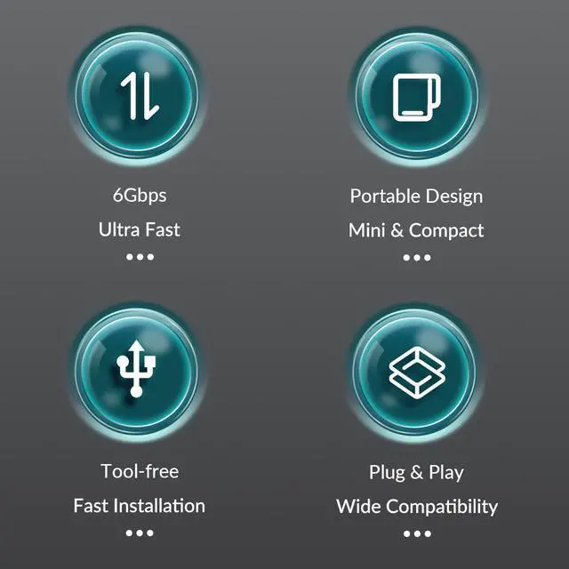 High speed transfer with USB C 3.2 Gen 1 port, Use USB3.2 to SATA III (6Gbps) solution with UASP protocol, which can provide transfer rate up to 6Gbps to ensure stable and fast data transfer guarantee.