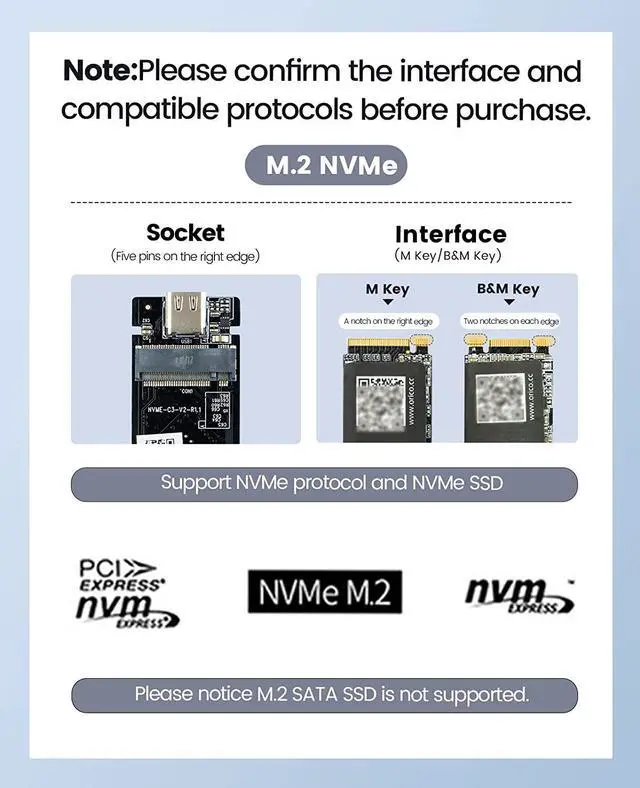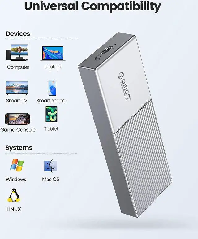 ORICO has been focusing on electronic products for 13 years, with a mature industry chain and innovative ability to keep pace with the times. We are very concerned about product quality and constantly make updates, 2-year after-sales your choice of us. The M.2 SSD Apater offers the possibility to use the M.2 NVMe SSD hard drive as an solid state drive only through the USB port of a PC or laptop.