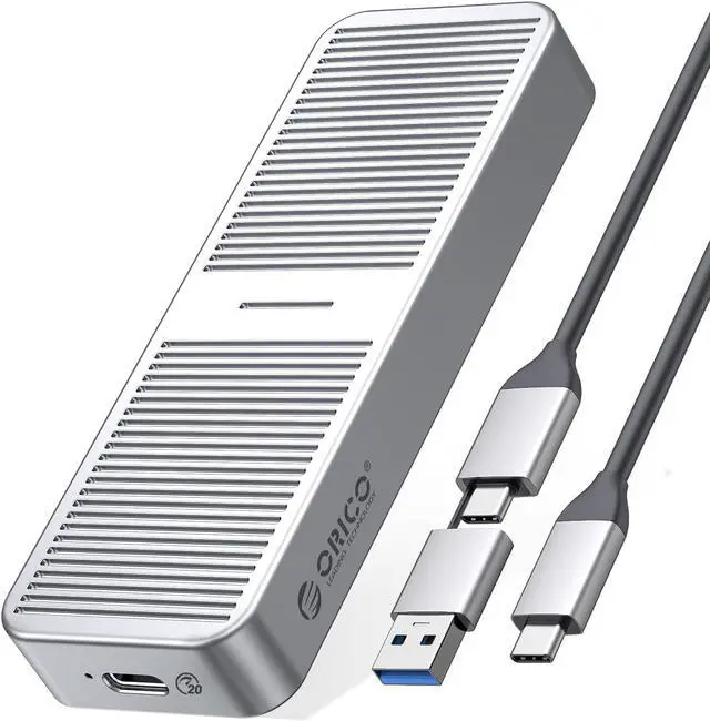 2SATAenclosure: the theoretical read and write speed can reach 480MB/s. Great for turning your internal SSD into a portable external ssd and storing data. Cooling Vest & Aluminum--The M. 2 adapter is professionally designed with the addition of an aluminum cooling vest, which wraps the SSD in all directions and conducts heat accurately. The M. 2 case is made of all-aluminum alloy material, and CNC technology is used to cut stripes to increase the heat dissipation area. Wide Compatibility--ORICO M. 2 enclosure compatible with both M. 2 PCIe NVMe M Key, NVMe B+M Key in sizes 2280. NOT Compatible with M. 2 SATA SSDs, M. 2 PCIe AHCI SSDs, M. 2 PCIe devices. Upgraded 2 in 1 Cable--The USB cable included with the M. 2 USB adapter has 2 output ports, USB C to A (10Gbps) and USB C to C (10Gbps).