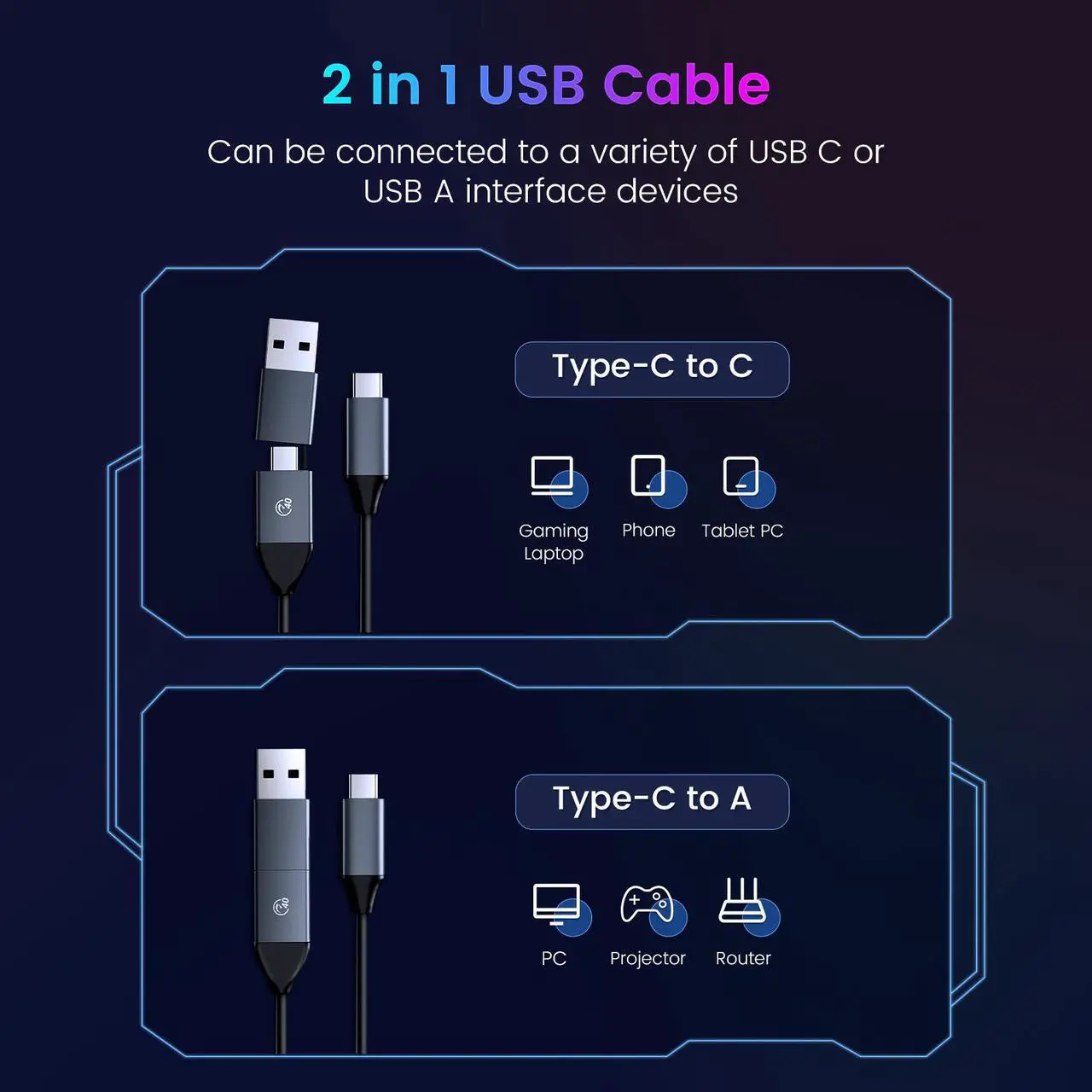 1 x USB-C/USB-A 2-in-1 Aluminum Alloy Data Cable (10Gbps)