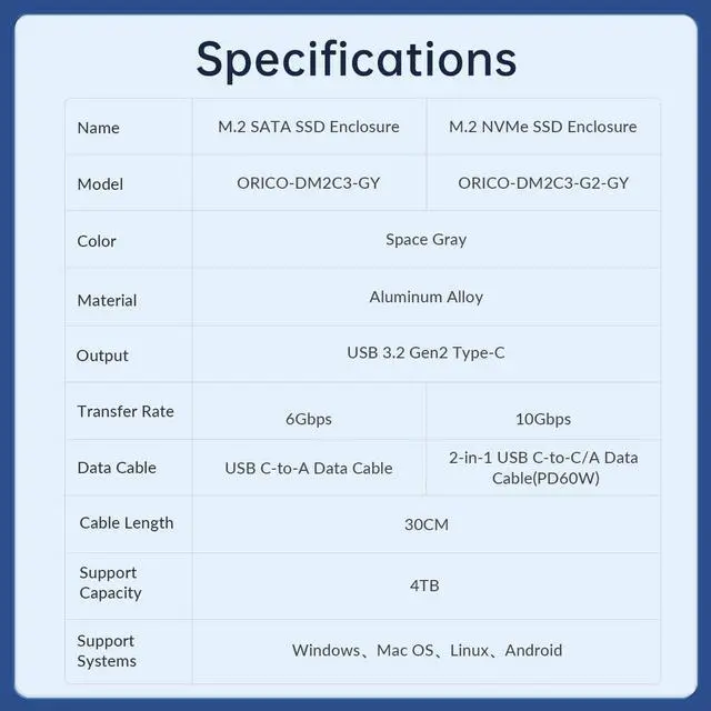 Tool Free Installation Upgrade Cooling Efficiency-Cooling Vest Upgraded C to C/A 2 in 1 Cable, Supports PD 60W Output USB 3.2 Gen2 10Gbps Speed Universal Compatible SSD Enclosure High-quality Main Control Chip