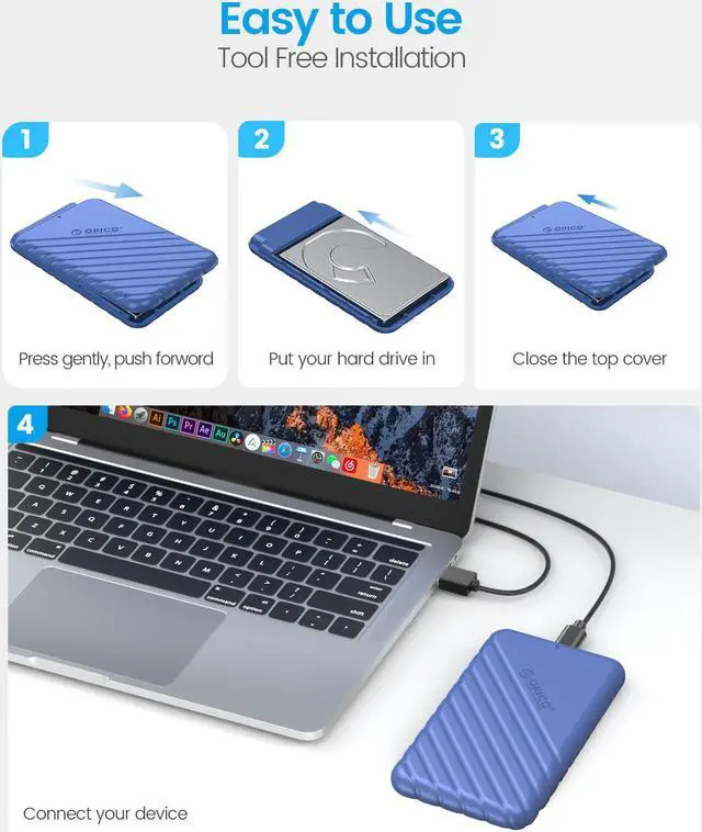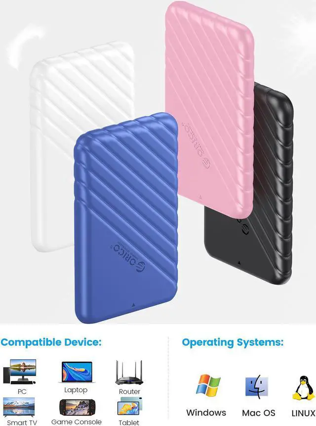 The portable hard drive enclosure series are applicable for 2.5 inch SATA HDD/SSD. With superior material, high transmission speed tool-free installation design, and high thermal performance, bringing you easy and convenient storage experience. Satisfy diversified storage demands, no matter working or entertaining.