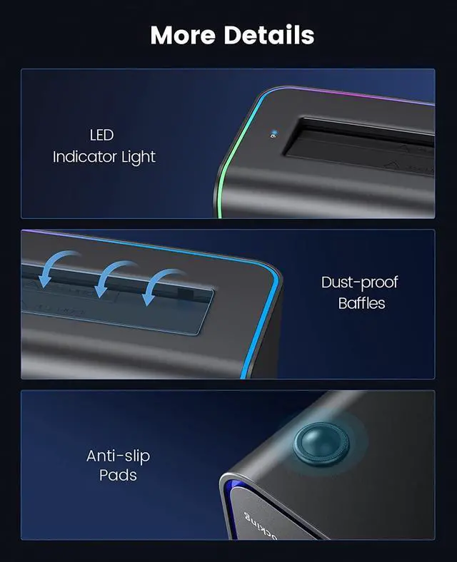 Anti-slip silicone foot pads on all four corners of the bottom, provide shockproof & vibration-resistant functions.