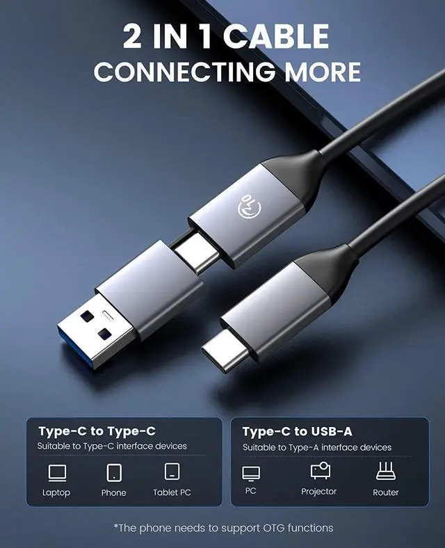 Advanced 10Gbps Type C-C cable with USB-A adapter,