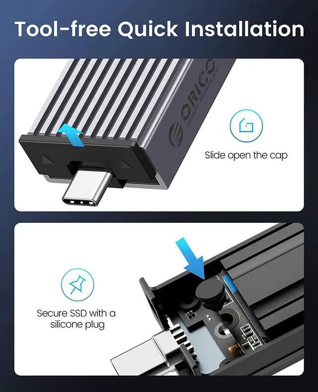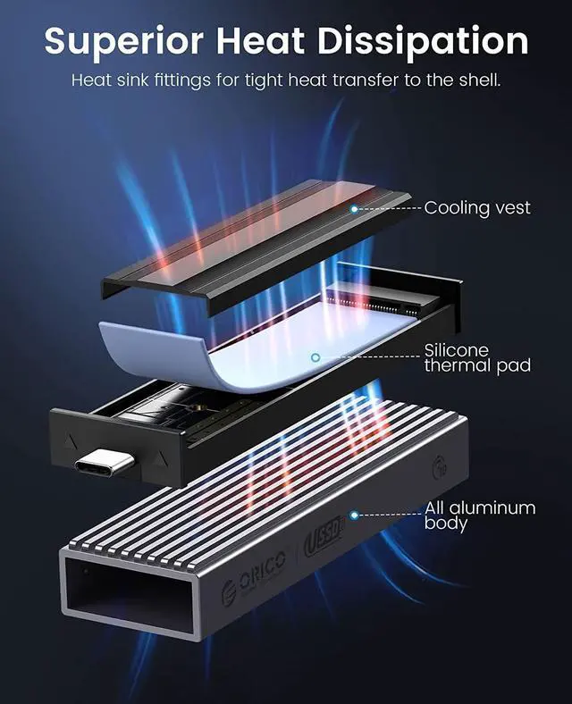 ORICO Type-C Dual Interface M.2 SSD Case Support M.2 NVMe M Key SATA NGFF M&B Key SSD Hard Disk with Cooling Vest USB Adapter