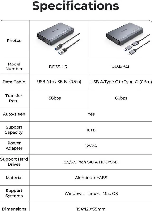 Efficient data transfer: With a 6Gbps data transfer rate, this ORICO 3.5" Hard Drive Enclosure ensures swift and seamless data transfer, saving you time and enhancing productivity.