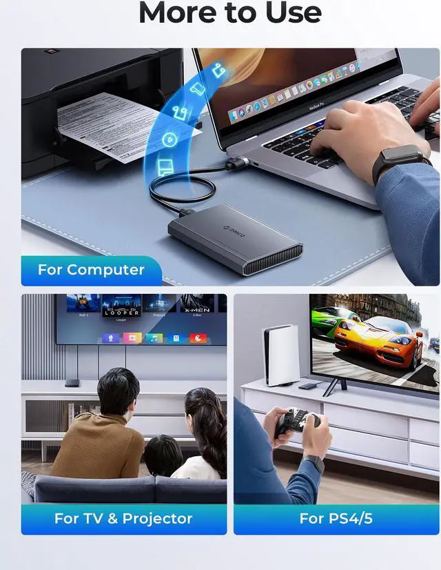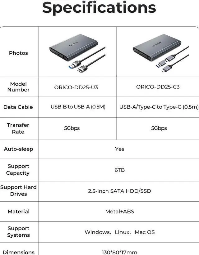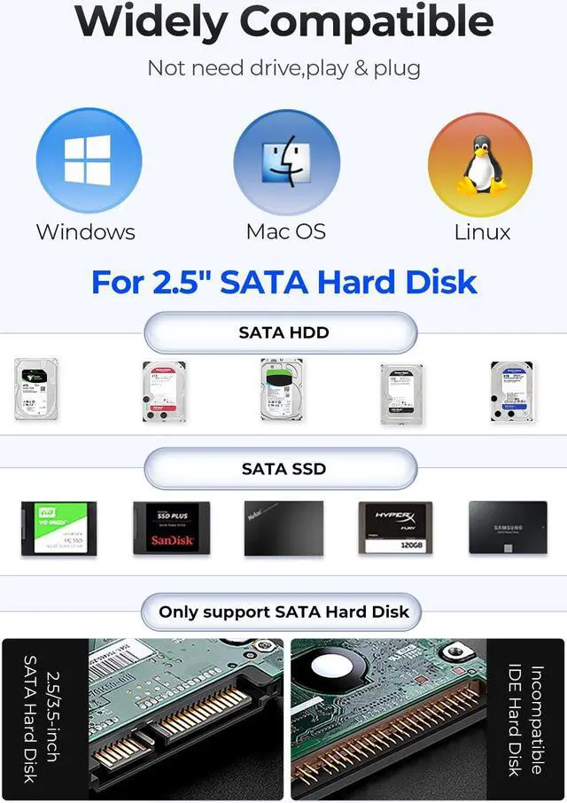 Wide Compatibility and Smart Chip: Equipped with a new upgraded smart chip, this enclosure ensures safe and stable operation across various operating systems including Windows, Mac OS, Linux, and Android, supporting 2.5 inch SATA HDD/SSD.