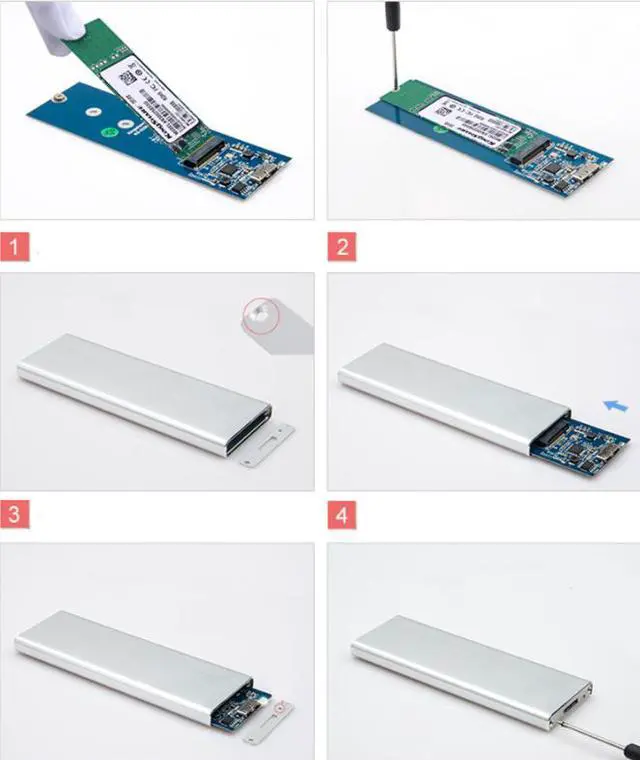 Package included: 1x USB-C to NGFF M. 2 B Key SSD Enclosure. 1x USB-C Cable. 1x Screw Drivers.