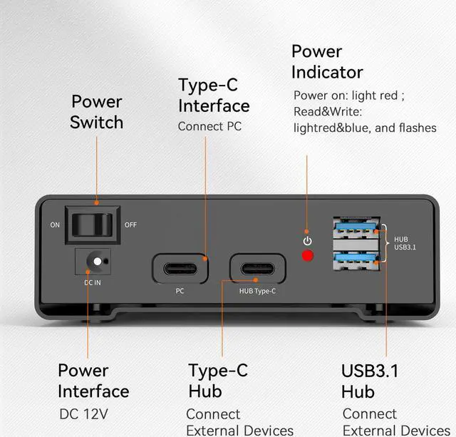 - 3 Hub Ports to extend the storage of PC, 1 Type C interface and 2 USB3.1 ports, backward compatible with USB 3.0/ 2.0/1.1/1.0 devices