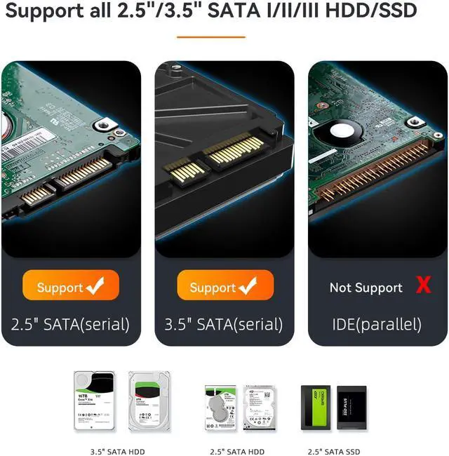 - Computer hard drive enclosure supports all 3.5/2.5 inch SATA I/II/III external hard disk up to 18TB.