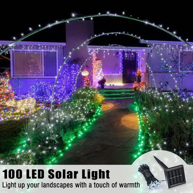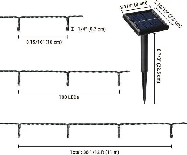 - 100 LED Solar Light - 36 ft Solar Powered String Light adopts 100 pcs bright LEDs to create a gorgeous wonderland, no electric wiring required for decorating anywhere you like, ideal to light up your landscapes with a touch of warmth for extra holiday enjoyment