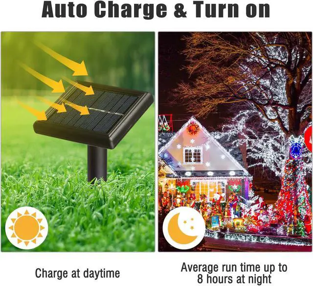 - Auto Charge & Turn on - With solar panel to charge under sunlight at daytime, automatic sensor activates after power is charged, lights turn on at night and turn off at dawn automatically; 1.2 V 800 mAh rechargeable battery to support average run time up to 8 hours after fully charged