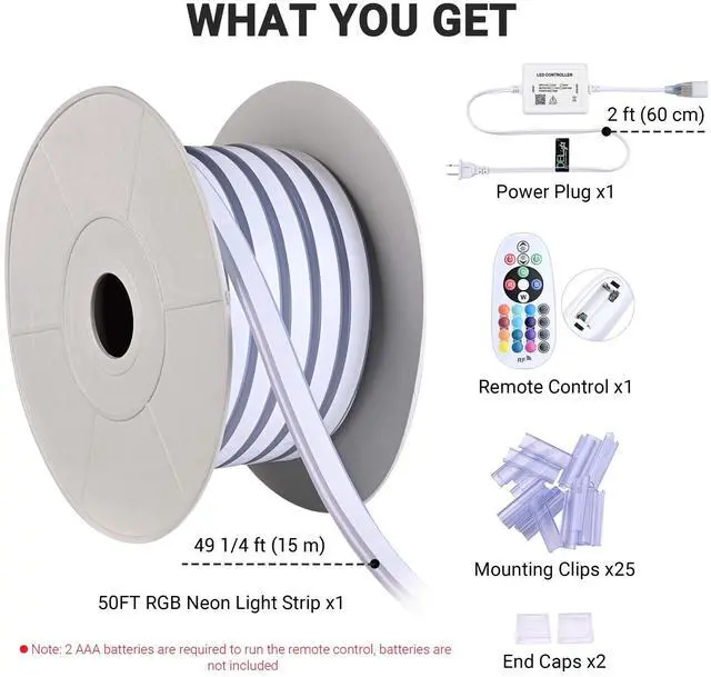 - Soft & Bendable Strip for DIY - 50 ft DELight 2-Sided Multi-color Neon Rope Light with 108 pcs RGB LED beads per meter, is flexible enough to fit any corner well & design angled pattern or in continuous rows, backlight for ceiling, window, door, garage, also ideal for restaurant, store, bar, party, Christmas, events.