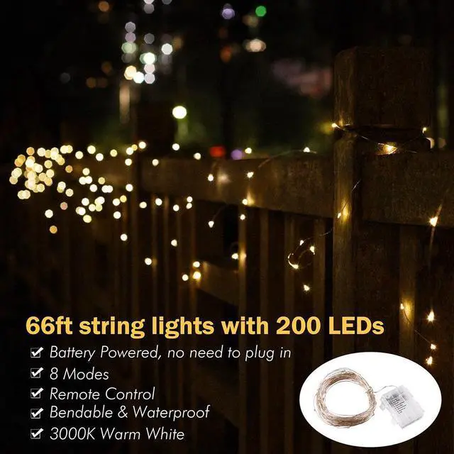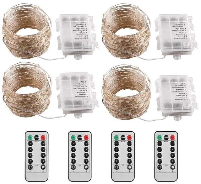- Festival Decoration - 4 Packs of DELight 66ft Fairy Light Strings include 200pcs LED light beads for each string light, feature battery-powered design without the need to plug in, and a remote controller for setting and adjusting time, brightness and modes, allowing for convenient usage as both an indoor or outdoor decorative feature