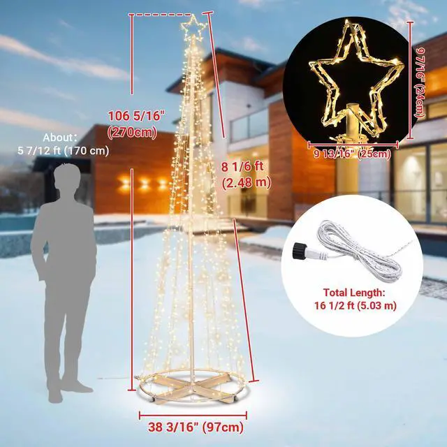 - Stunning Visual Appeal - With 640 warm white LED lights and glowing star, this outdoor Christmas tree light creates a dazzling light show, great for enhancing the festive atmosphere in cafes, restaurants, bars, and at various markets and gatherings, making your space stand out and ensuring your store is visible from afar
