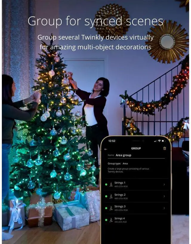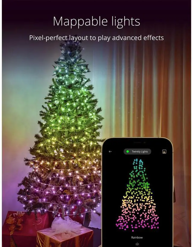- User-controlled lighting design via Wi-Fi and Bluetooth with free Twinkly app available for iOS and Android users on mobile or tablets