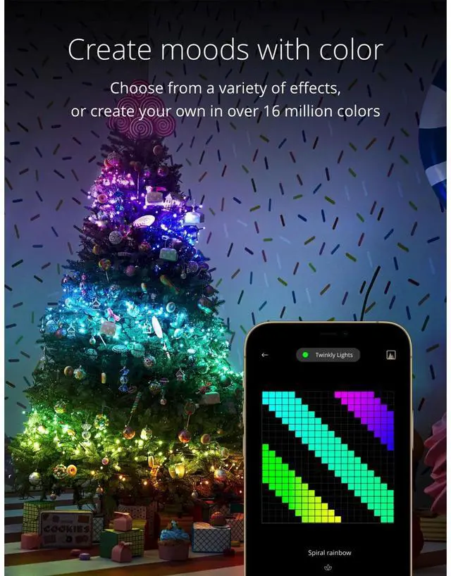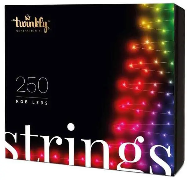 - Twinkly Strings Series of 250 RGB LED lights produce millions of color variations for precise color matching, mood lighting, and room design