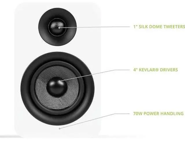 Featuring 4-inch Kevlar® woofers and 1-inch silk dome tweeters, these speakers produce a neutral, balanced tone. A bottom-mounted 1/4-20 threaded hole attaches to compatible Kanto speaker stands for confidence-inspiring security and audio coupling.