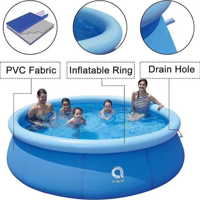 Easy And Quick To Set: Simply lay the AVENLI family inflatable swimming pool out on the leveled ground, inflate the top ring, and fill the pool with water. The intelligent packing makes it easy for the users to quickly install the product. This ensures that you dont spend hours figuring out how to install your summer backyard pool.