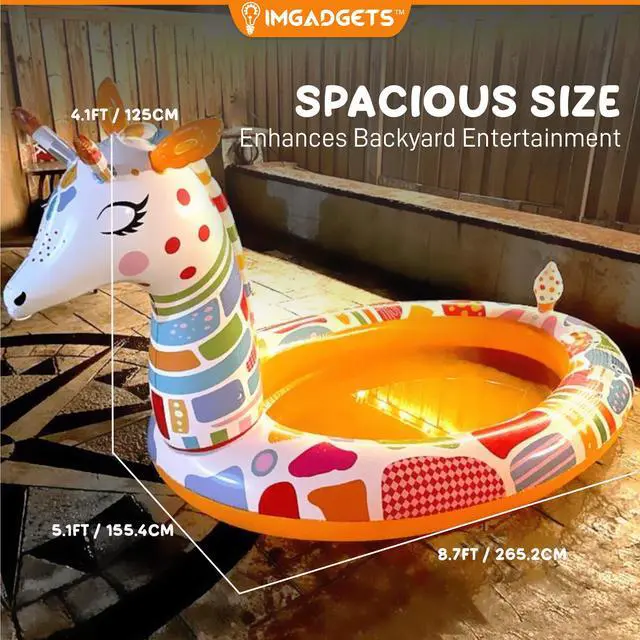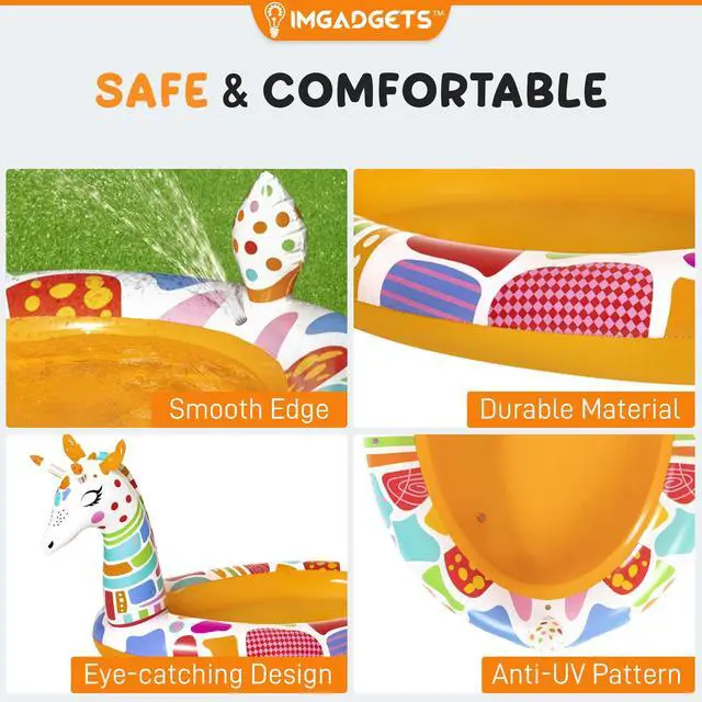 Bright, groovy giraffe print adds personality to playtime and makes its attractive for kids and also for babies who are initiating their journey with summer pools. It makes it perfect for kids aged 2 +.