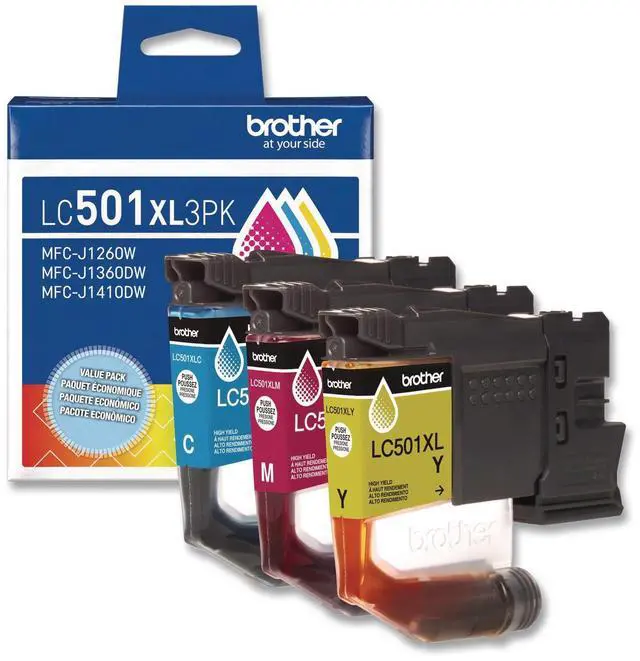 BrotherLC501XL3PK 3-Pack High Yield Cyan, Magenta, and Yellow Ink Cartridges