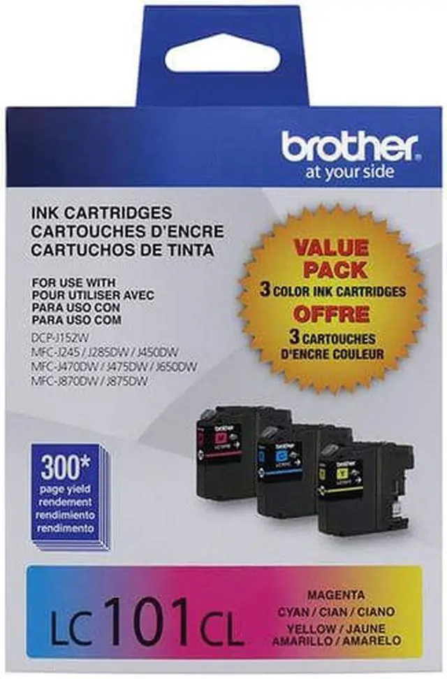 Crafted to work with select Brother inkjet printers in seamless unison, these ink cartridges are simple to install and produce high-quality results. These Brother ink cartrid. Produce archival-quality documents with this 3-pack of tricolor ink cartridges. Crafted to work with select Brother inkjet printers in seamless unison, these ink cartridges are simple to install and produce high-quality results. Standard ink cartridge yields up to 300 pages. Standard ink cartridge yields up to 300 pages. Convenient multipack contains three individual color cartridges (yellow, cyan, and magenta).