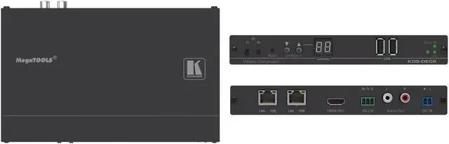 Kramer KDS-DEC6 4K60 4:2:0 HDCP 2.2 Video DecoderThis Kramer KDS-DEC6 4K60 4:2:0 HDCP 2.2 Video Decoder is streaming over an IP network that carries 4K@60Hz (4:2:0) video, audio, IR, RS–232, USB over IP with HDCP 2.2 in unicast (one–to–one) or multicast (many–to–many) configurations.