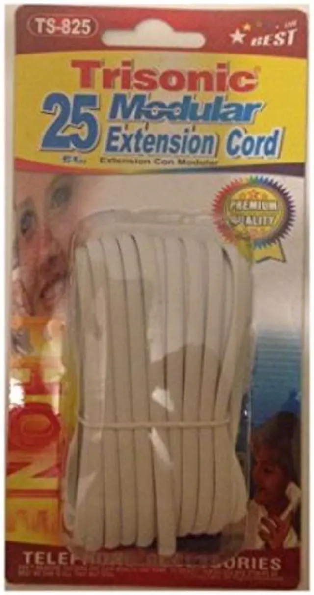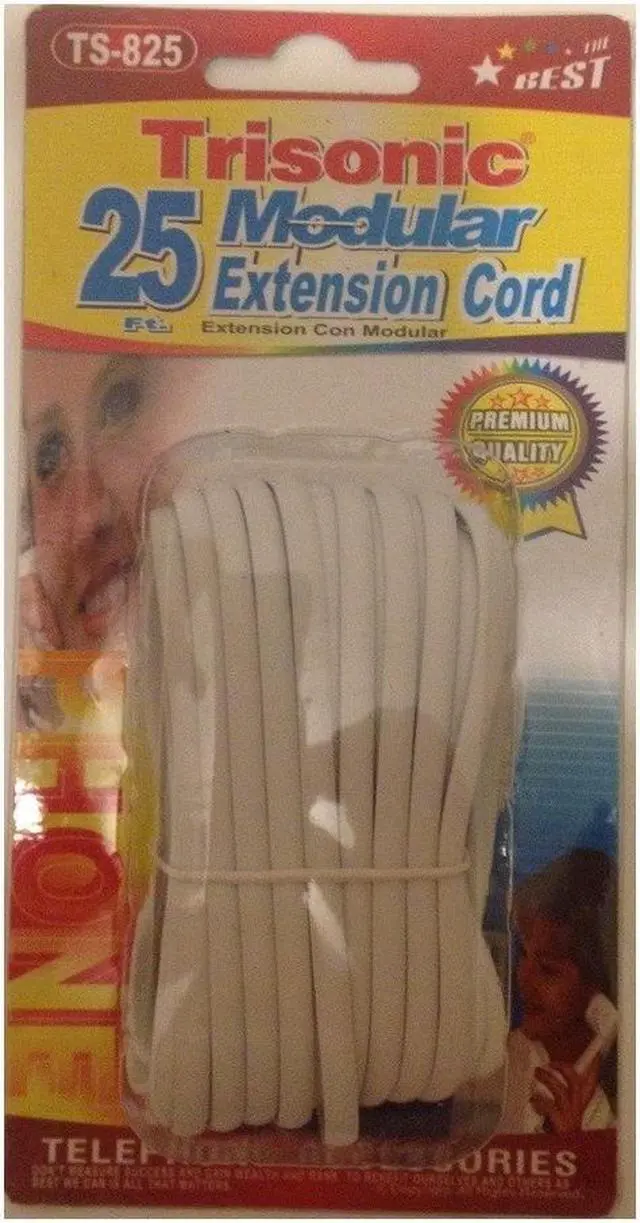 Trisonic Telephone Phone Extension Cord Cable Line Wire 25 White
