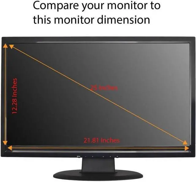 Actual Screen Protector dimensions are 25 inch measured diagonally. 21.81 inch width x 12.28 inch high.