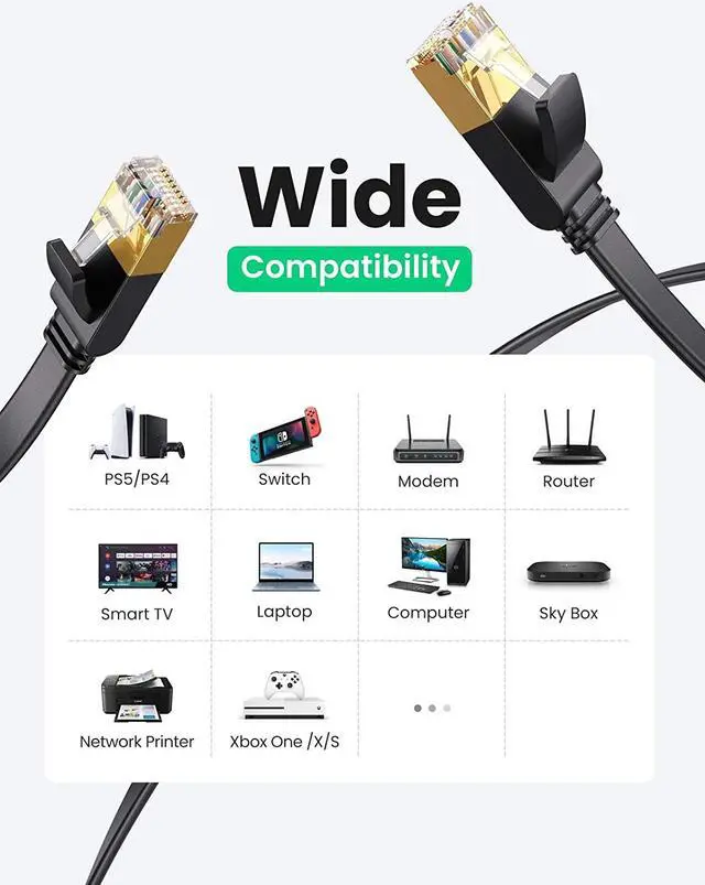 Universal Compatibility: Cat7 patch cable connects all the hardware destinations on a high-speed Gigabit Local Area Network (LAN), such as PCs, computer servers, printers, routers, switch boxes, network media players, NAS, VoIP phones.