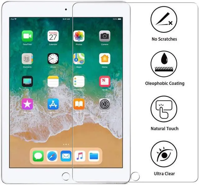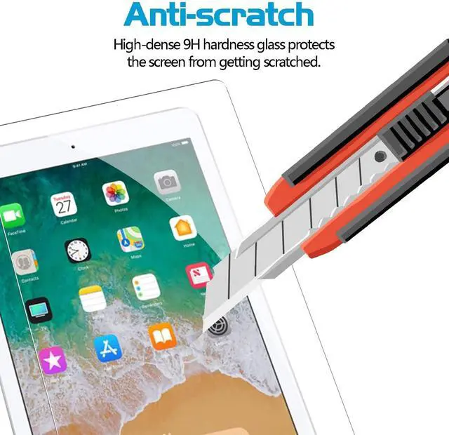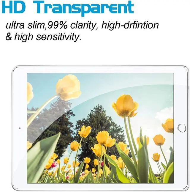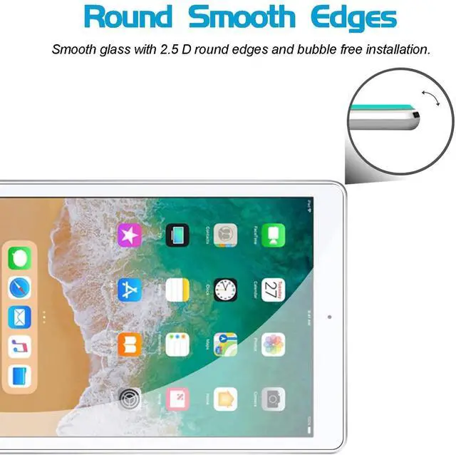 This High quality 2.5D Round Edges Tempered glass Screen Protector Fit For iPad 9.7 inch 6th Generation and 5th Generation, iPad Pro 9.7 / iPad Air 2 / iPad Air. Top Grade Protection- Made from superior 9H [ 2.5D Round Edges] tempered glass that is scratch resistant and shatterproof protecting your screen from scratches to high impact drops. High Definition and Touch Sensitive - Highly responsive, sensitive with clarity and transparency ensures fast responding performance. Easy installation, can be easily installed without bubble and and removed without residue.
