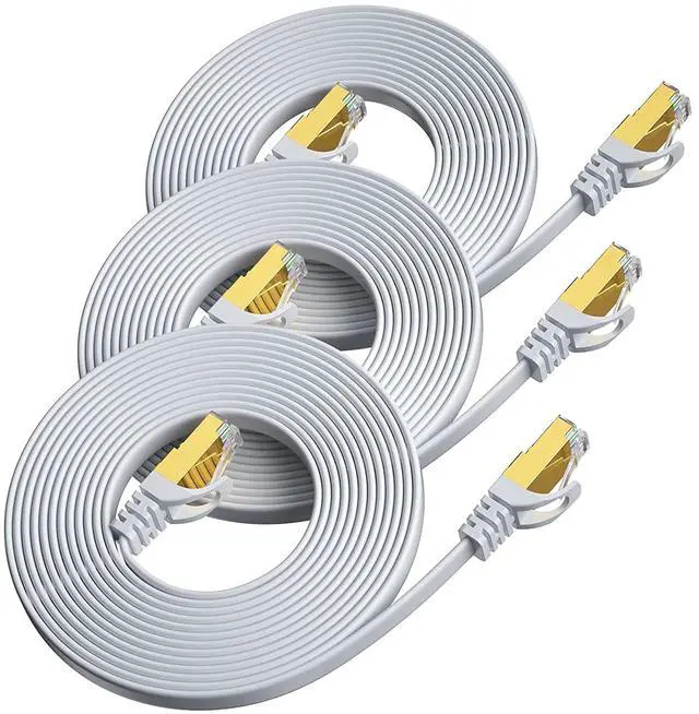 ?Hyper Speed Performance?3FT 3-Pack Cat-7 Ethernet Cable for wired home and office networks, offers performance of up to 600MHz and data speed up to 10Gbps per second, guarantees high-speed data transfer for server applications, cloud computing, and HD video streaming. ?Stability & Durability?Composed of 4 pairs 32AWG Stranded Bare Copper Conductors; SSTP (Screened Shielded Twisted Pair) Shielding provides the best protection against electromagnetic interference and radio-frequency interference (EMI/RFI), and eliminates alien crosstalk (AXT); The Shielded Rj45 connectors with 50 micron Gold-Plated contacts, molded strain-relief boots, and snagless molds provide durability and ensure a secure connection.