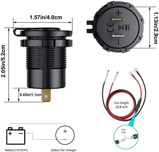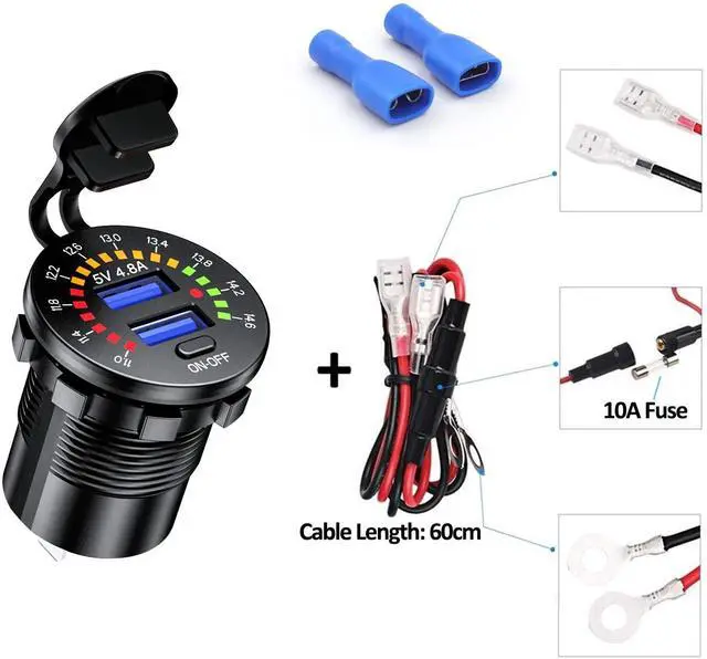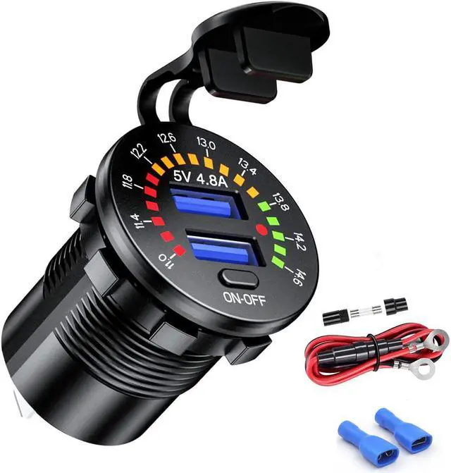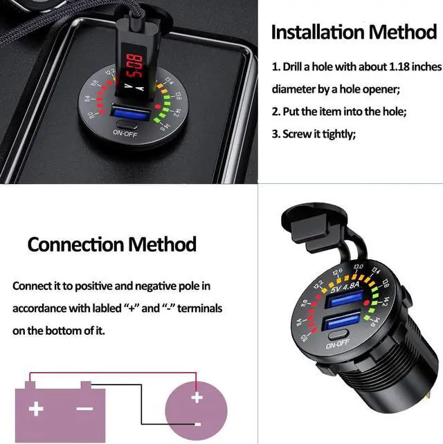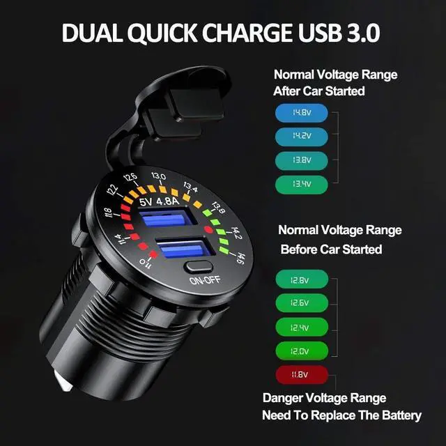 ?Multiple Protection: providing SIX protection of over-current, over-load, over-charge, short-circuit, over-volatge and over-heat, the DIY automobile charging adapter with smart chip for charging and discharging control. When the input voltage exceeds 14.6V, the red indicator lights on. It not only upgrades the charging efficiency, but protect your digital devices.