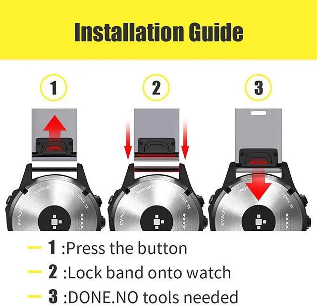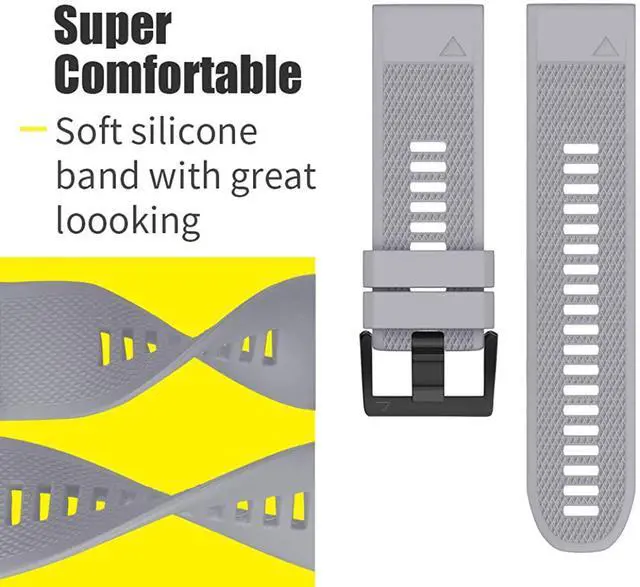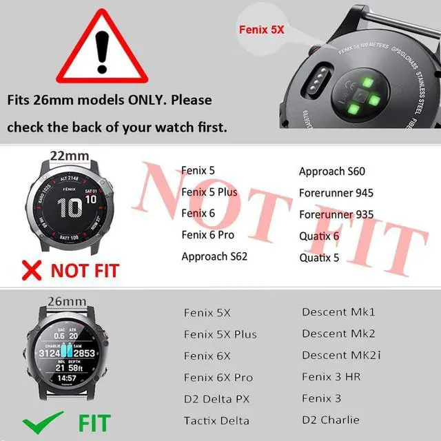 [Soft silicone material] Band secures great with the double strap holders, secure and comfortable to wear all day. 26mm Silicone band for Fenix7X, Fenix 5X, Fenix 5X Plus, Fenix 6X, Fenix 6X Pro, D2 Delta PX, Tactix Charlie, Tactix Delta, Descent Mk1, Descent Mk2, Descent MK2i, Fenix 3 HR, Fenix 3, D2 Charlie. The silicone band fits well and is solidly mounted to the watch. [Easy fit mechanism design] Really great quality and you cannot believe how easy it is to take on and off.