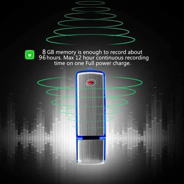 2 IN ONE - Pro Voice Recorder & Memory Stick (USB Flash Drive) - 8GB memory is enough to record about 96 hours. Max 20 hour continuous recording time on one battery charge. Max 1-2 hour charge time. Not only does this excellent piece of equipment work as an audio recorder but it can also be used as a regular USB flash drive. ARE YOU STRUGGLING WITH REMEMBERING THINGS OR TAKING NOTESTHIS VOICE RECORDER IS FOR YOU - To Help You Succeed More! Used by students, journalists, doctors, patients, musicians, writers, parents, teachers! If you need to remember 100% of what you hear, you will simply not want to settle for any less than what this small Dictaphone can give you!
