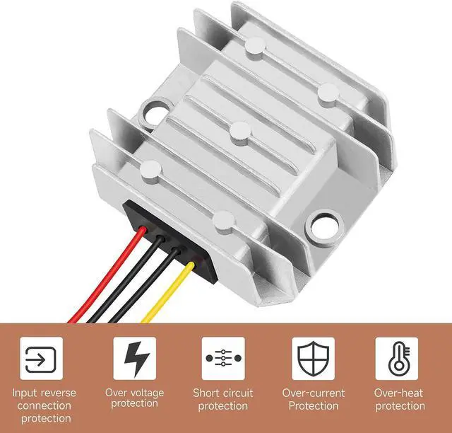 Conversion Efficiency: up to 96% Essential for car audio system or other 5V car products (particularly useful in vehicles with 24V power supply) Protection function. Built-in overload, overcurrent, over temperature and short circuit protection. This Voltage regulator widely used in automotive, surveillance systems, railway signals, medical equipment, instruments and meters, LED products, LED strips, cable TV and other low power test systems