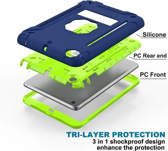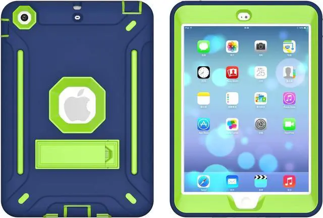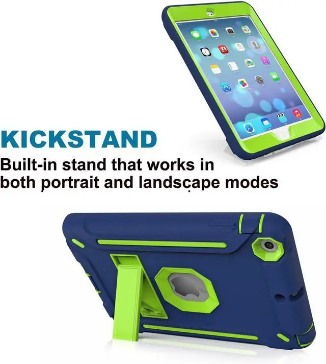 ipad mini Hybrid Design Shock Proof Case for 7.9 iPad Mini (1st Gen) and iPad Mini 2 with Retina Display (2nd Gen. 2013 Release), Compatible with iPad Mini 3 with Touch ID 2014 Release (3rd Gen); It does NOT fit any other model. Unique KickStand Design allows easy access to watch shows, movies, and play games while on the go. Super sturdy and Easy To Carry = Absolutely Kids Friendly premium shock-absorbing Silicone and durable hard polycarbonate provide protection against accidental drops, bumps and shock. Made to Fit Your device Perfectly with All Ports and Buttons Accessible.