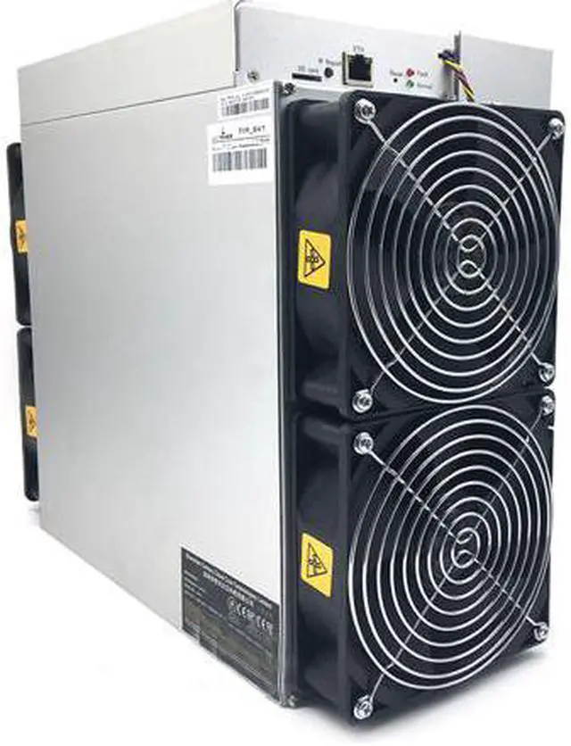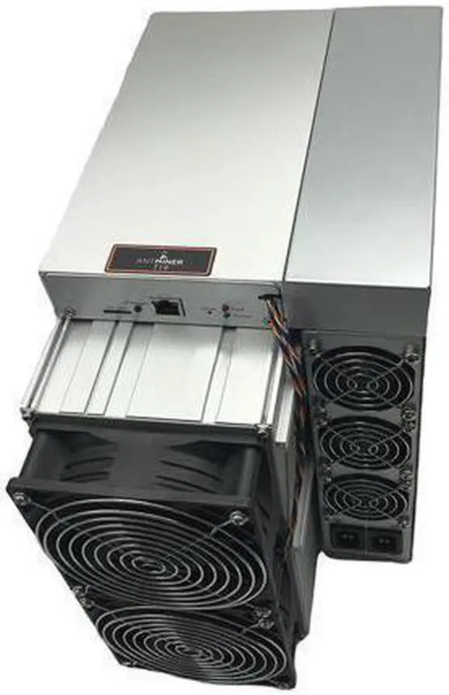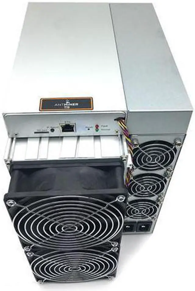 Model Antminer T19 (84Th) from Bitmain mining SHA-256 algorithm with a maximum hashrate of 84Th/s for a power consumption of 3150W.