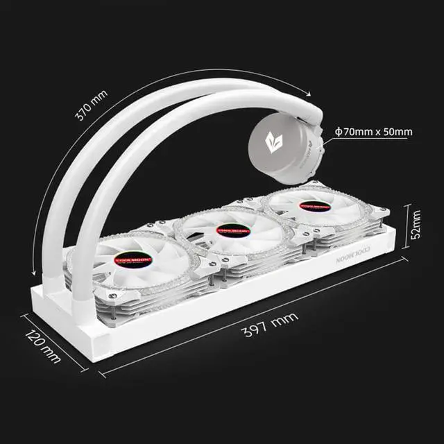AS360 Water Cooled Radiator, Coolmoon ARGB Water Cooling Head, Luminous Integrated DIY Cold Discharge White CPU Computer Radiator