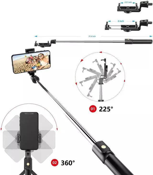Extendable Selfie Stick Tripod Stand with Bluetooth Wireless Remote
