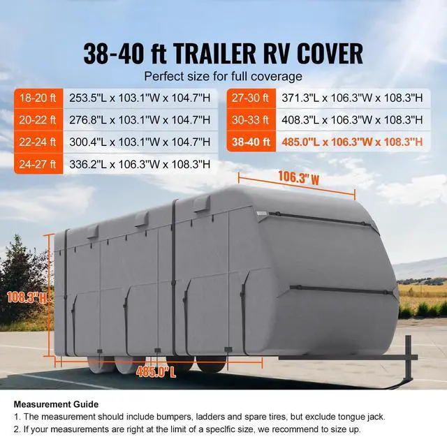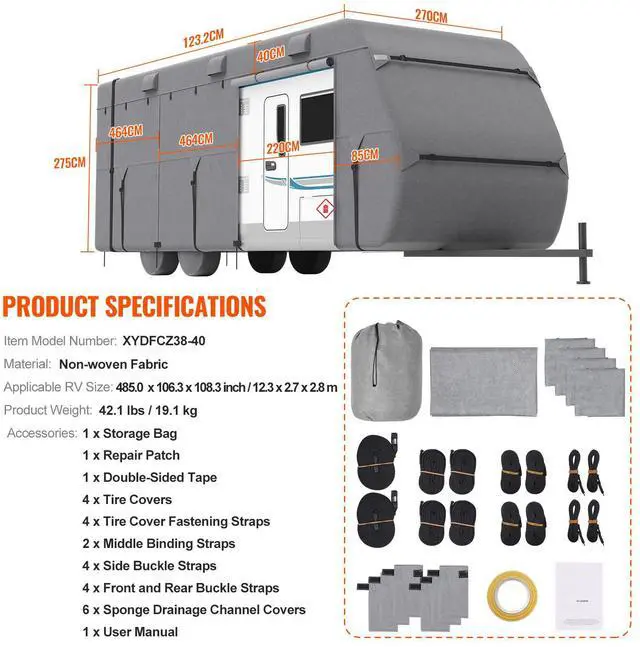 Applicable RV Size: 485.0 x 106.3 x 108.3 inch / 12.3 x 2.7 x 2.8 m